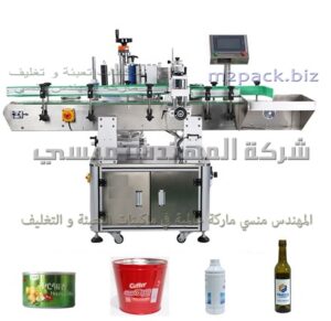 ماكينة رأسية آتوماتيك للصق ليبل علي العبوات الدائرية من شركة مهندس منسي