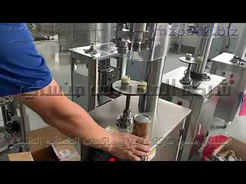تقفيل غطاء صفيح او ايزي اوبن علي علبه بلاستيك دائريه ، ماكينات دوسرة نصف اوتوماتيك